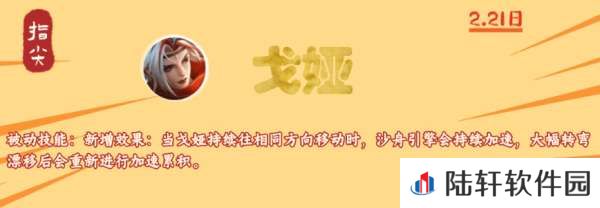 新增了个被动,戈娅往相同方向移动,沙舟持续加速,大幅转弯或者漂移会重新加速。