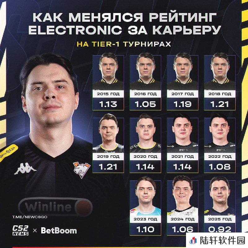 Virtus.pro战队指挥electroNic自2015年以来每年的大型赛事数据。