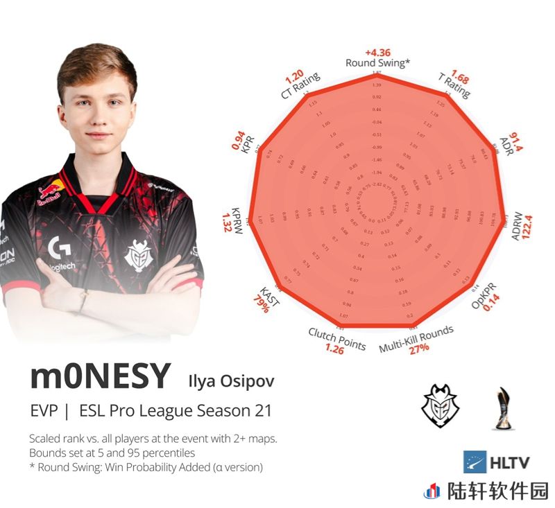MOUZ战队的队友,同时在KPRW(0.97)方面也位居榜首,从而获得了他个人第二个EVP奖项。