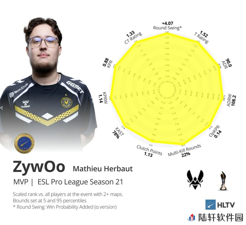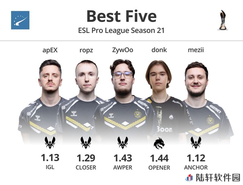 即便如此,五名成员中有四名入选——而且apEX带领队伍在进攻方取得了64.8%的胜率——这也说明了Vitality在整个赛事中的统治力。