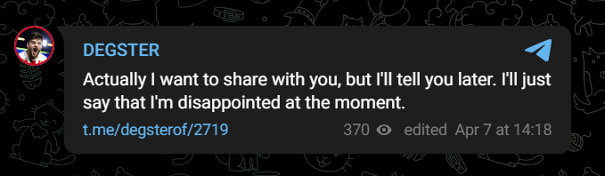 Abdul Gasanov | degster在赛后也写道:“我想和你们分享点东西,但稍后我会再说的。只能说当前我很失望。”