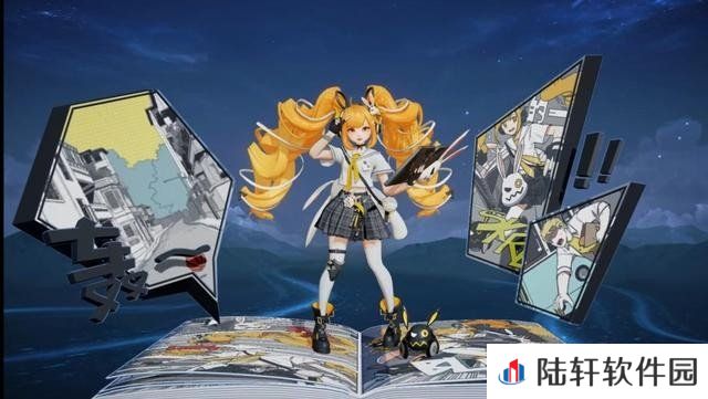 首先是这次皮肤的形象,黄色的螺旋双马尾加上水色上衣与格子百褶裙无一处不显示着少女的青春活力,据官方所说这一次的主题为“时空穿越”所以手上的武器也设计为了魔导书,而卡通兔子作为一种元素也融入了展示动画和特效之中。而这一次的展示动画则是用漫画书作为地台,两边也是漫画分镜元素并且加入独特的字幕效果完美呈现了漫画这一元素。