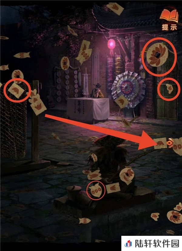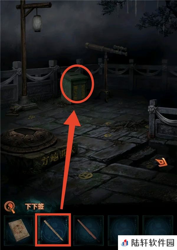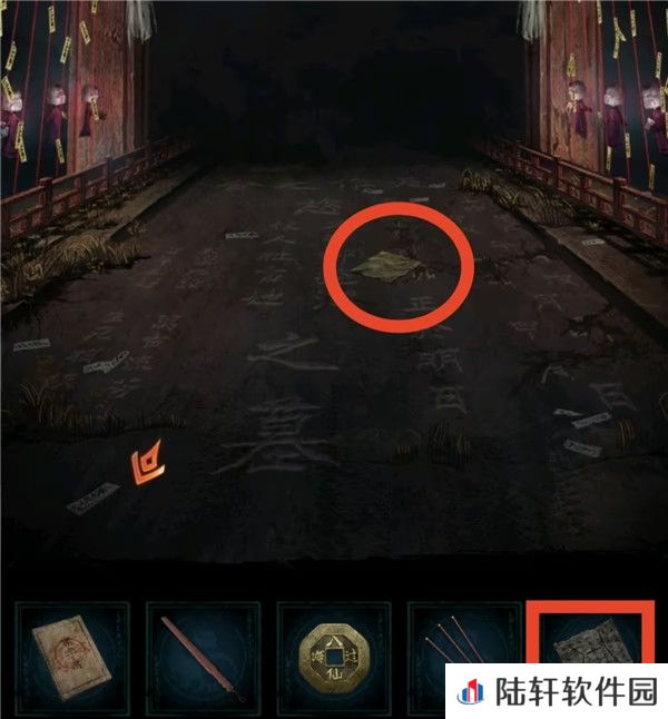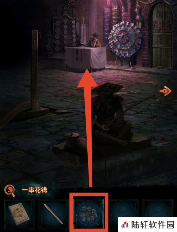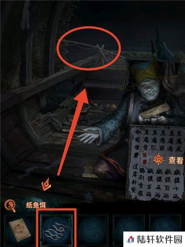 7、把遗照丢掉,看望远镜获得线索4,上桥按照线索4把人形孔明灯点亮成对应颜色,获得钩爪。去河边用钩爪把船勾过来上船,点柱香后获得纸鱼。