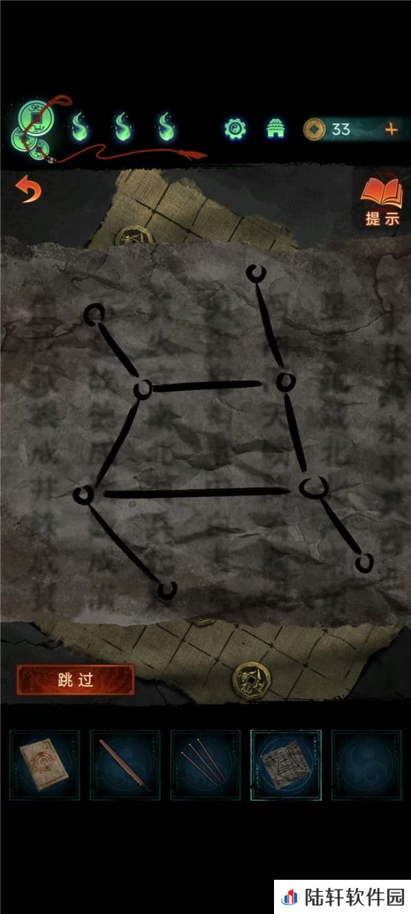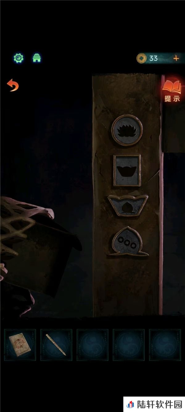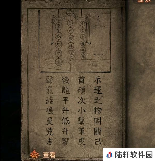 4、用戒尺开门,把下下签丢了,灯笼亮红色去望远镜获得线索3,结合书上内容按顺序(如图所示)敲打老八旁边的鼓,获得花钱和龟壳。