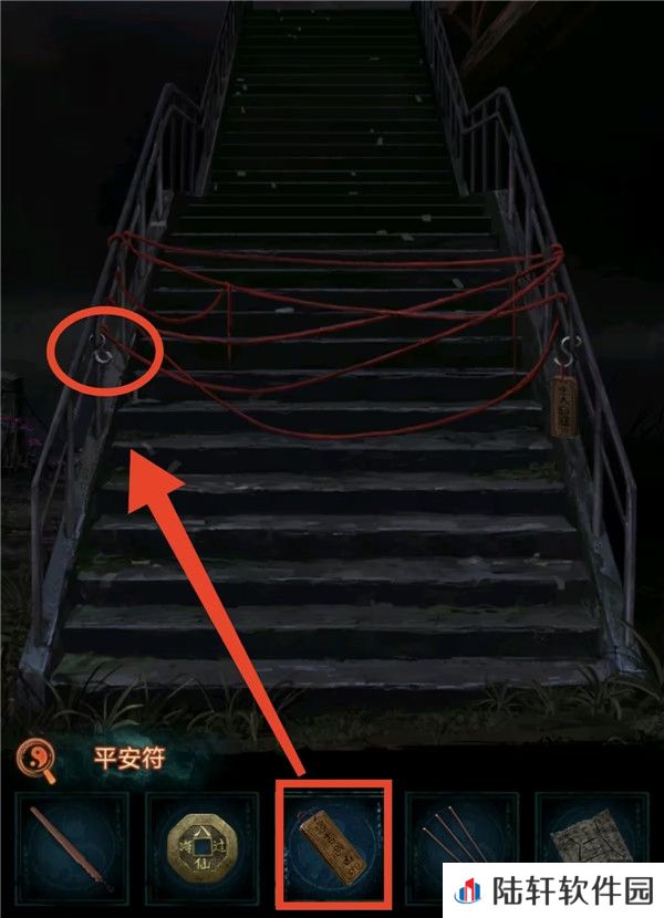 5、上楼,把龟甲补上,别忘记捡旁边的平安符。河边的楼梯,挂上平安符解除封印,上桥。