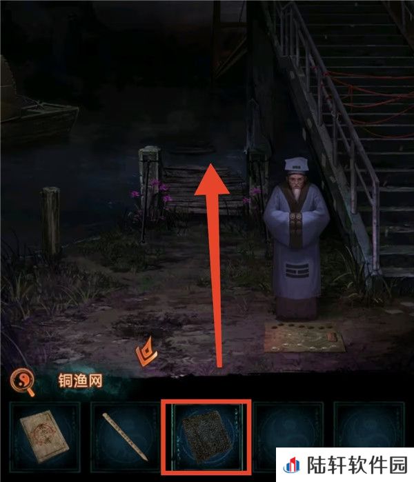 2、解谜如下图所示获得渔网,去河边铺上过去捡铜钱。