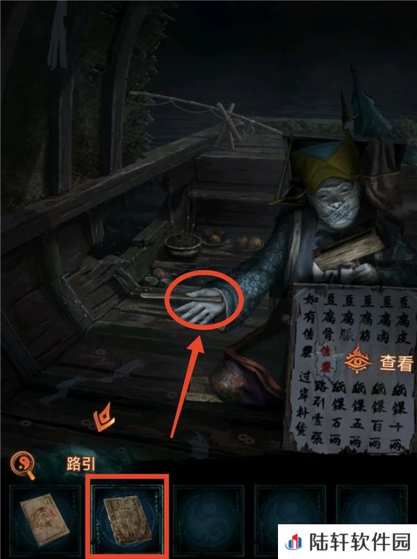 8、把纸鱼给钓鱼佬挂上,钓鱼佬会把饵料送你,上船,现在你就是钓鱼佬,不过运气不错钓上关键线索乌龟,回露台按顺序点击龟壳获得路引,把路引给老八渡娘后通关。