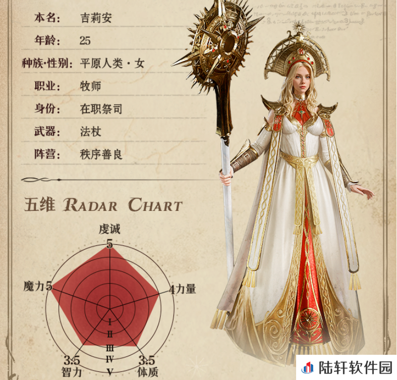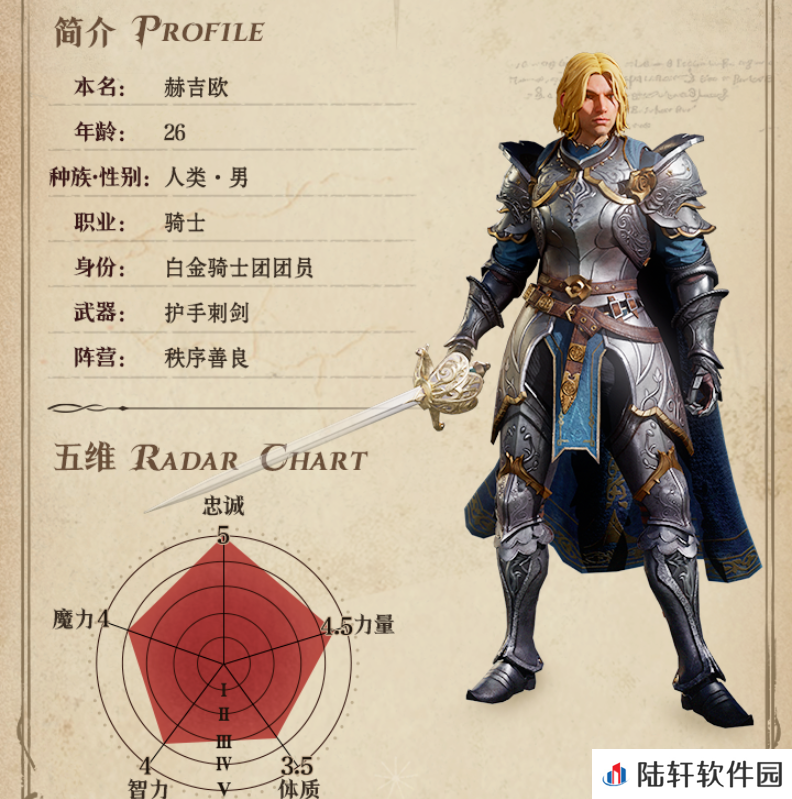 这是一名骑士职业的角色,五维属性都达到4点以上,属性发展相当的全面,是个各方面均衡发展的英雄,在战斗中的适用性很高,能力也非常的出色。被动”骑士精神”,在威能技释放后,有一定概率对随机的1个己方对手施加鼓舞状态,并持续一段时间,该效果让他在鼓舞阵容里面有比纯粹的输出英雄更为丰富的功能。