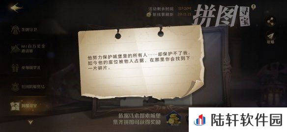 线索1:他努力保护城堡里的所有人.....却保护不了我。如今他的座位被他人占据,在那里你会找到下一片碎片。
