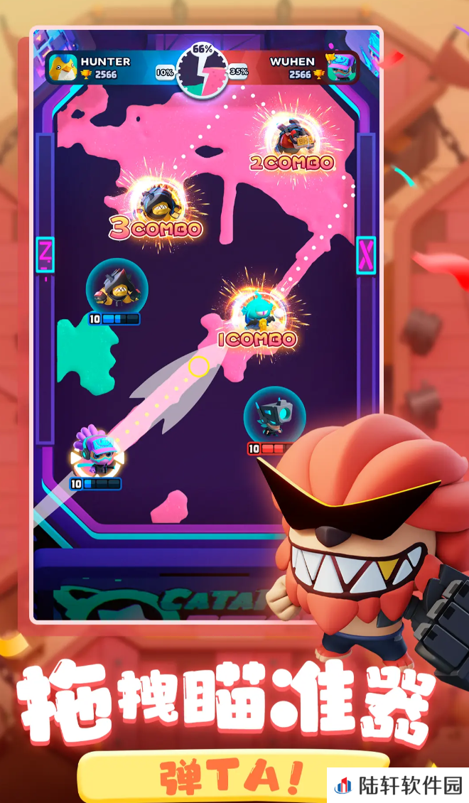 这款游戏节奏非常的快,基本上三五分钟就能够完成一把对局,在每一场对局中,小伙伴们将会带领一支4人小队,在赛场上与其他玩家进行比拼。游戏胜数也是非常简单的,在开局之后,小伙伴们的屏幕上将会出现若干个方块,而你需要做的就是使用这些方块来命中敌人并且获得分数,在对局结束之后获得分数较高的一方则视为胜利。