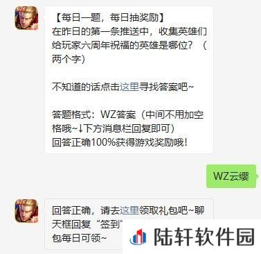 在昨日的第一条推送中,收集英雄们给玩家六周年祝福的英雄是哪位?-王者荣耀2021年微信10月29日每日一题答案分享一览[图文]