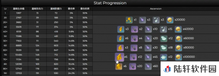 6、80级:坚牢黄玉*6+兽境王器*20+鬼兜虫*60+史莱姆原浆*24+摩拉*120000。