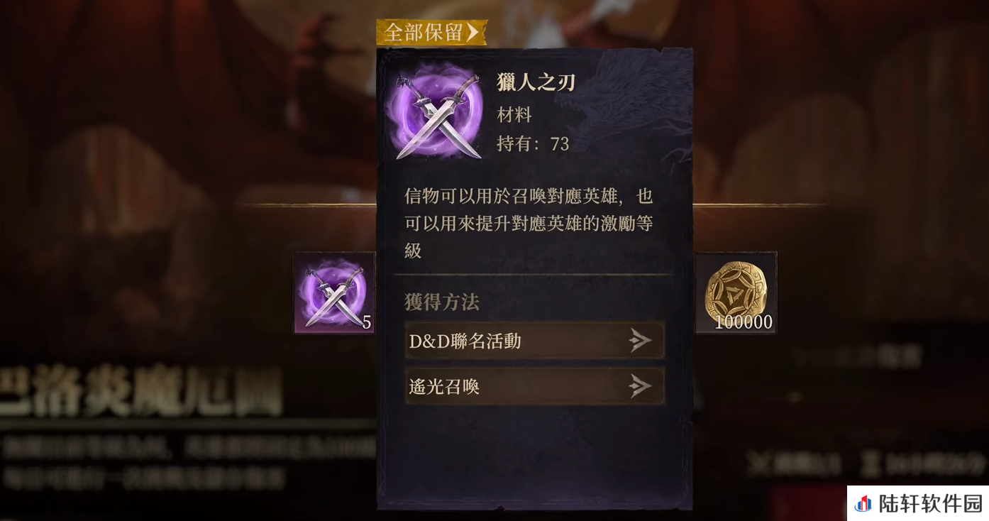 在挑战巴洛炎魔厄图的活动中,所有英雄的等级和属性都会被固定为100级,而技能等级和激励效果则会正常继承。同时,Boss巴洛炎魔厄图对来自崔斯特·杜登和关海法的伤害有额外加成,玩家可以利用这一机制来提升输出。每日可挑战一次,累计伤害,达到一定积分即可获得奖励。比如刷到1000万分便可获得5个猎人之刃信物,这些信物可以用来召唤愿英雄或提升对应英雄的激励等级。