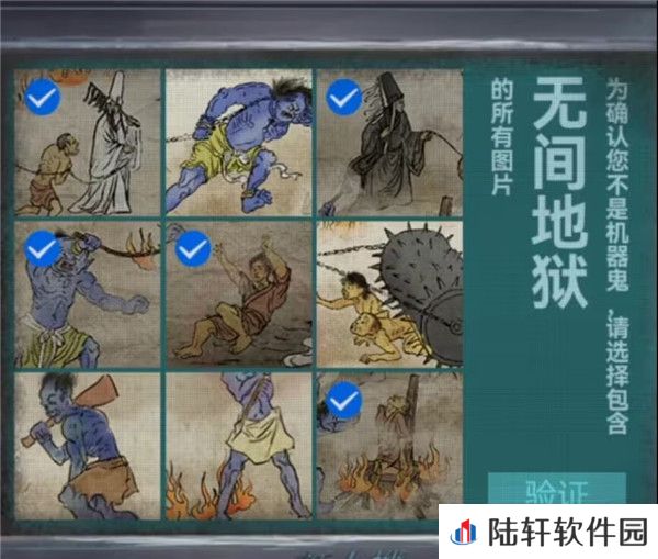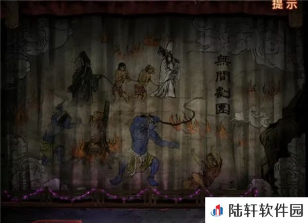 20、剧情结束之后幕布上出现地狱图,记一下上面出现的都有什么东西,有拉着人的****,在烧人的鬼和推倒人的鬼,再次回到音乐厅查看纸人机,上面写了可以买一赠一,但是需要填写验证码,将地狱图中出现的内容都选择一下点击验证拿到纸人头发。