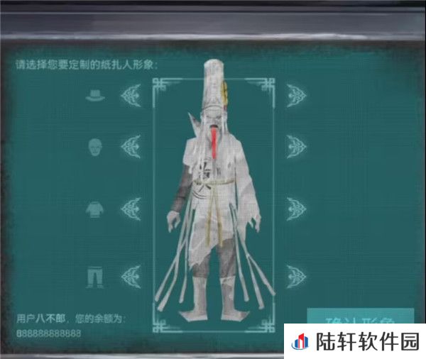 16、再次回到音乐厅,对舞台后面的纸人机输入密码,前面祸无福对应的就是空藏何了,右边的灯笼、扇子、云朵对应的就是唵、娑、诃,调整完毕后我们可以玩换装小游戏了,强烈要求奇迹老登加入换装系统!我们需要调整的是白无常,想一想前面对于白无常的记忆,调整到如下图后点击确认形象。