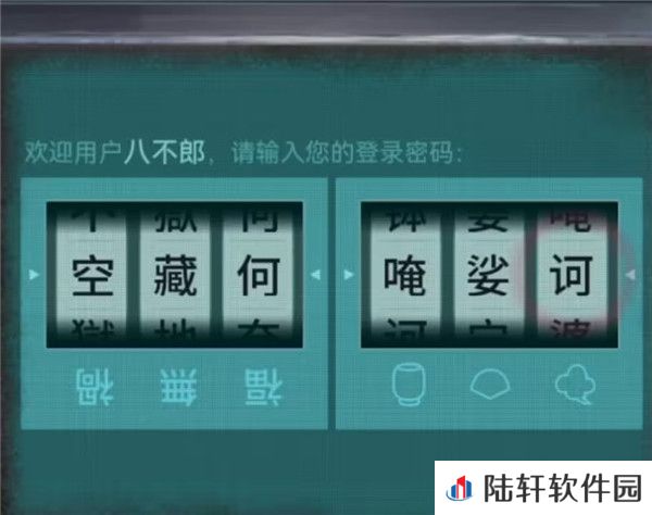 14、记好后发现又获得了新的线索,扇子对应的是娑字,云朵对应的是诃字,灯笼对应的是唵字,都是些生僻字啊!这个密码和前面菩萨后面的密码就没有关系了,记得分开记录,我们点击舞台后面的大屏幕会导致屏幕左移,露出来的右边位置有个纸人机,查看一下发现需要六个密码,我们现在只有一半。