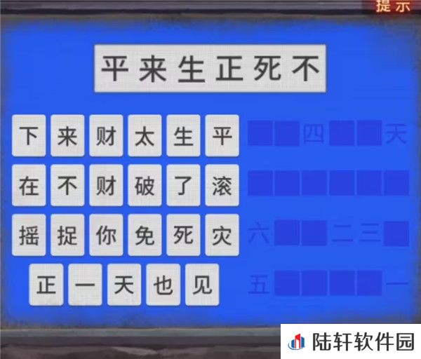 13、那么我们就能获得线索4=正,6=不,2=来,3=生,5=死,1=平,所以我们按照顺序排列一下就是平来生正死不,找一下这几个字输入后可以查看三生,这里今生会有剧情,不过这不影响我们掏出小卡片,将三生所有出现在框框中的文字都给记录下来。