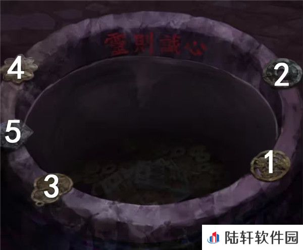 1、剧情过后拿走水缸旁边的花钱,右边倒吊人手里拿到有孔的卡片,左边有一串图案记一下,是从下往上的窗花-圆形-葫芦-小花-五边形,查看左边的柜子,从唱片机上拿到五枚纸钱,对中间水缸使用纸钱后按照右边门上的顺序依次点击纸钱,五枚纸钱扔完小高能注意,后退一下就发现门开了,进入菩萨房间。