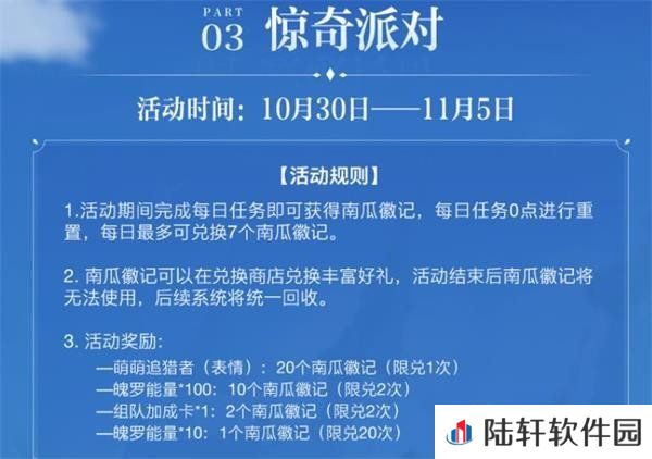 2)南瓜徽记可以在兑换商店兑换丰富好礼,活动结束后南瓜徽记将无法使用,后续系统将统一回收。