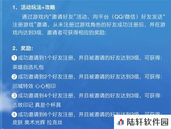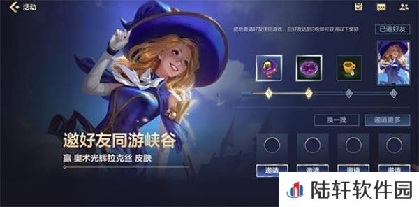 D、成功邀请6个好友注册,并再其等级达到3级时可以获得拉克丝奥术光辉皮肤。