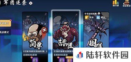 4、奇妙夜惊魂军普通模式困难难度每日会有不同的战场效果,同时每个BOSS会有1个BOSS特性。完成普通模式困难难度后可以解锁挑战模式,挑战模式分为固定挑战和合作挑战两种玩法。