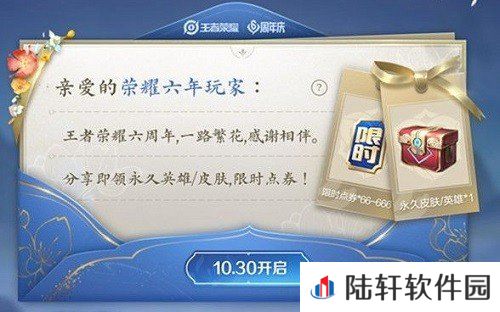 2、并且玩家在10月30日登录游戏,即可在活动界面的周年庆活动中领取66-666随机不等的点卷返利,并且还有永久的皮肤和英雄等着玩家领取。