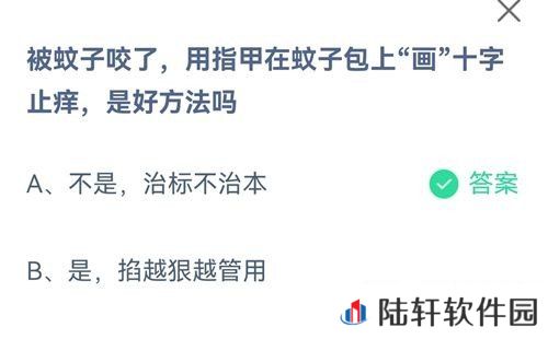 被蚊子咬了,用指甲在蚊子包上画十字止痒,是好方法吗?这也是今日《支付宝》蚂蚁庄园为大家带来的最新的每日一题的问题,相信很多小伙伴对这个问题还是非常的疑惑的,这里小编也是为你带来了最新的每日一题的问题与答案,感兴趣的小伙伴欢迎点击预览2021《支付宝》蚂蚁庄园8月15日每日一题答案的全部内容哦。