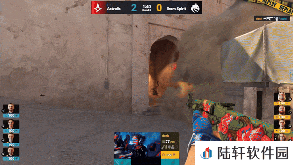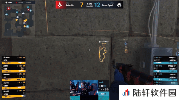下半场攻守互换。土匪抱团打B,放下雷包土匪抢占沙地,donk以强大的个人能力四杀强拆雷包拿下手枪局。