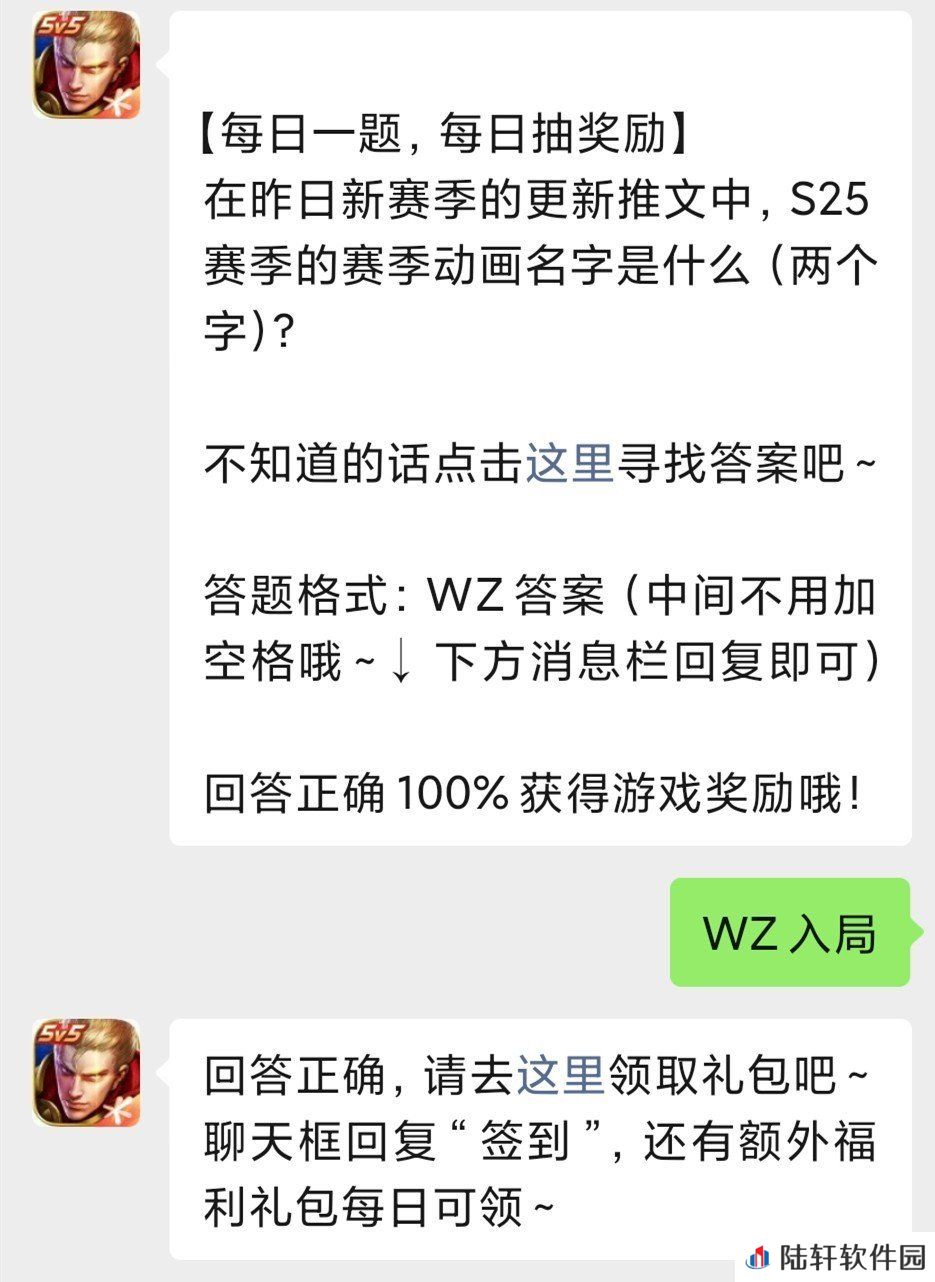 在昨日新赛季的更新推文中,S25赛季的赛季动画名字是什么?-王者荣耀2021年微信9月24日每日一题答案分享一览[图文]