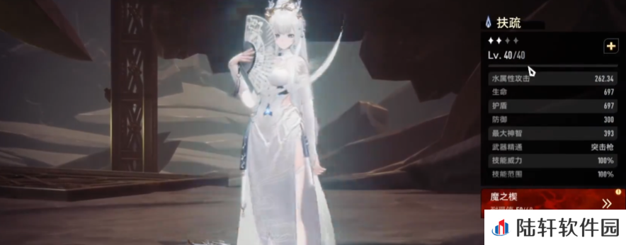 白色旗袍,手持小折扇,是偏召唤类型的角色,可以召唤云璃,最多能同时存在5个云璃,继承角色100%属性,选择周身最多3个敌人作为目标,会持续对周围人造成伤害,同时记录伤害量,每隔3秒可以将记录的伤害量转化为治疗,治疗周围的队友,并且可以回复神智。