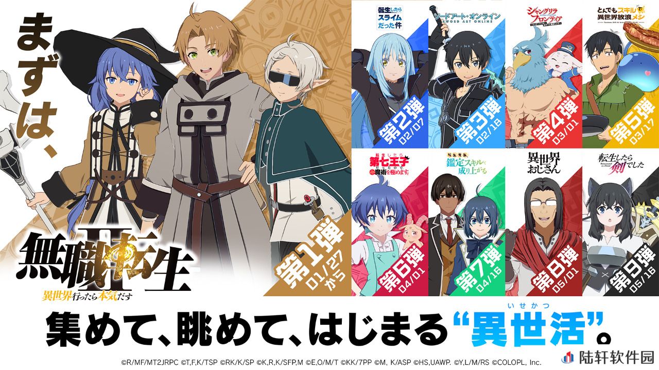 官方透露,游戏的第一季(1st Season)将分阶段引入9部热门动漫作品,每部作品及其角色将每隔2周依次在游戏中登场。《无职转生 第二季》首波登场,随后包括《关于我转生变成史莱姆这档事》、《刀剑神域》在内的其余8部作品也将依次亮相。