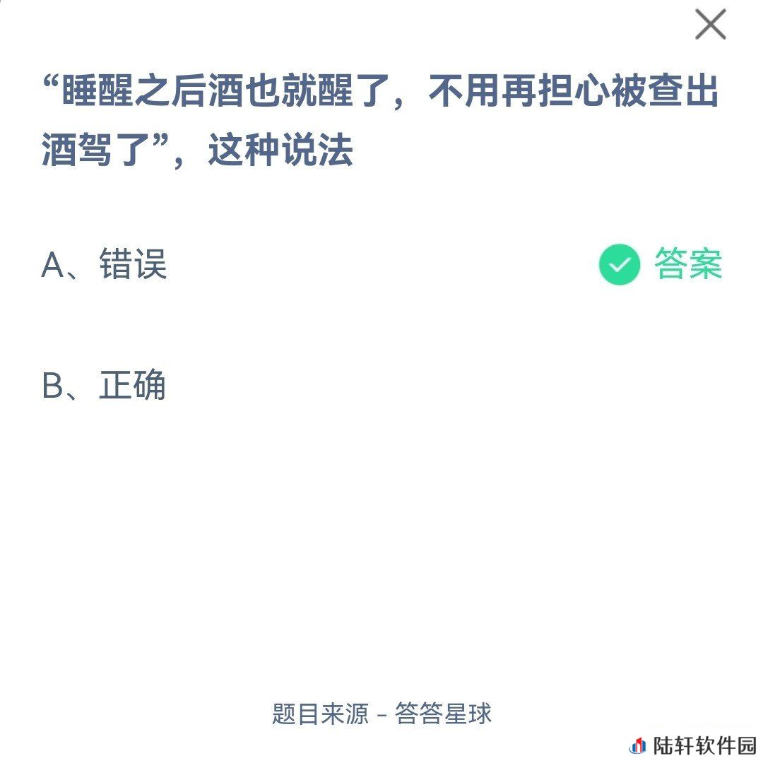 “睡醒之后酒也就醒了,不用再担心被查出酒驾了”,这种说法?-2022支付宝蚂蚁庄园2月23日每日一题答案一览[图文]