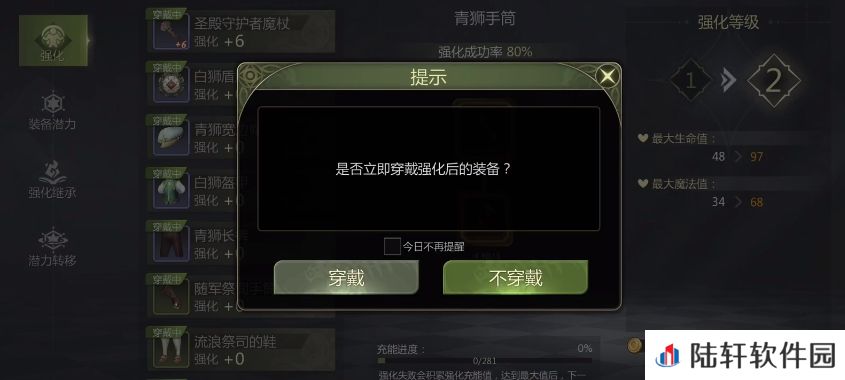 在拥有足够强化资源以后就可以着手准备去进行装备方面的强化了,其中建议是优先把装备都提升到加5的程度,因为前期基本都是包上的,能让大家的战力最大化,在前期推进过程中会顺利许多,后面的话可直接用粉尘购买强化石来快速提升装备等级。