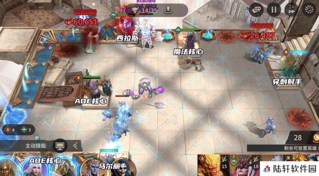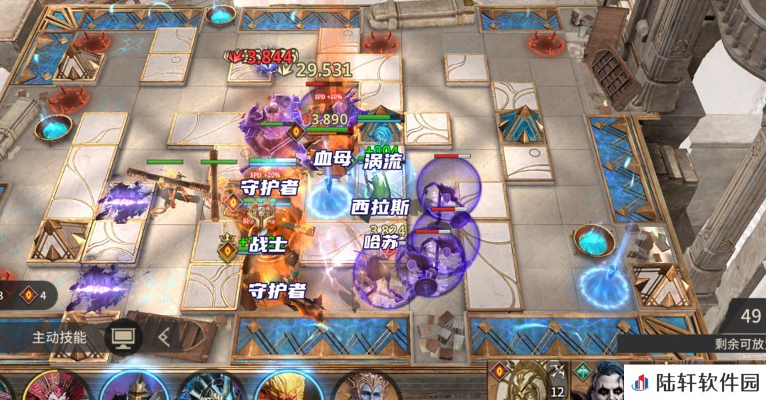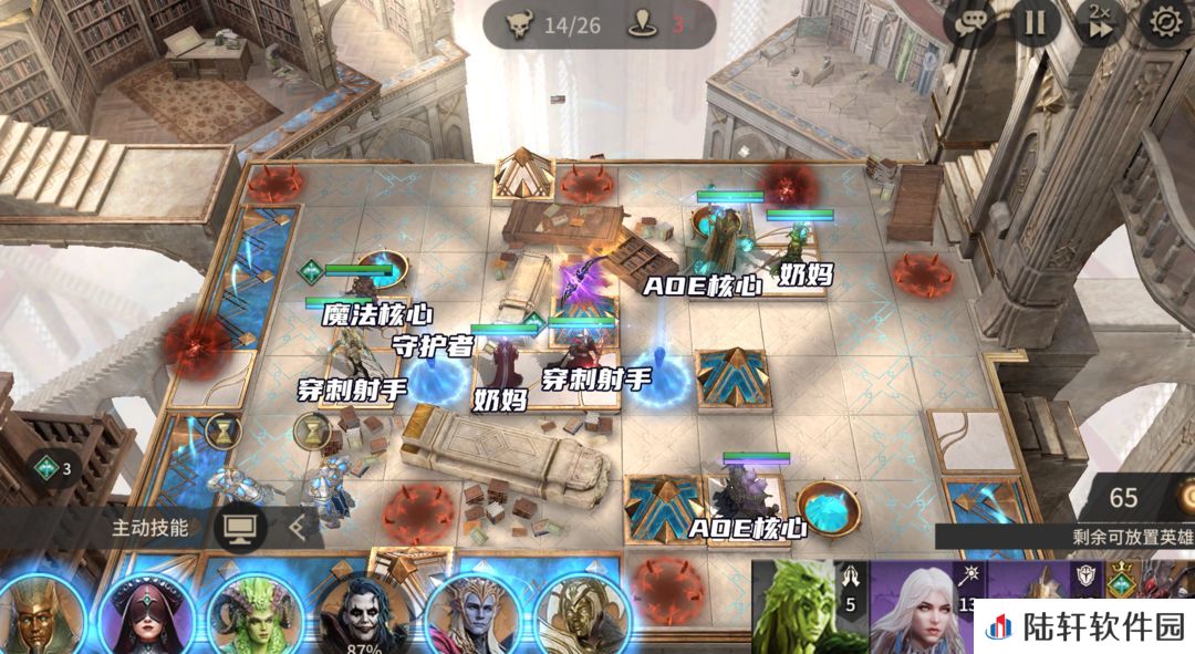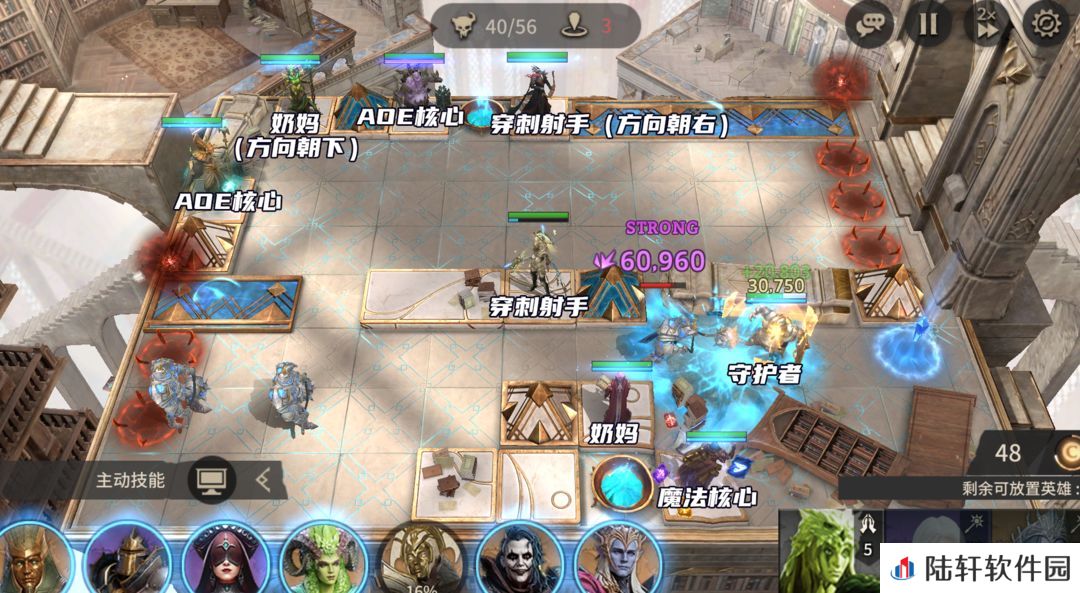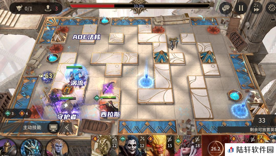 放置西拉斯打掉刷出来的愚者,随后在左上角放置AOE法核清掉刷出来的毁灭者。放置涡流、守护者,西拉斯开大清BOSS。如果没有西拉斯,可以用孙悟空来打掉BOSS,BOSS会持续输出,顶不住可以多带一个奶妈。