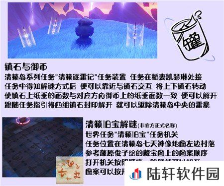 跟随任务指引将四组镇石封印解开 就可以驱除清籁岛中央的雷暴