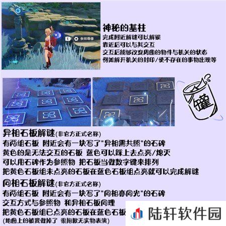 交互方式与参照物 和异相石板同理 把黄色石板组已点亮的石板在蓝色石板组点亮就可以完成解谜