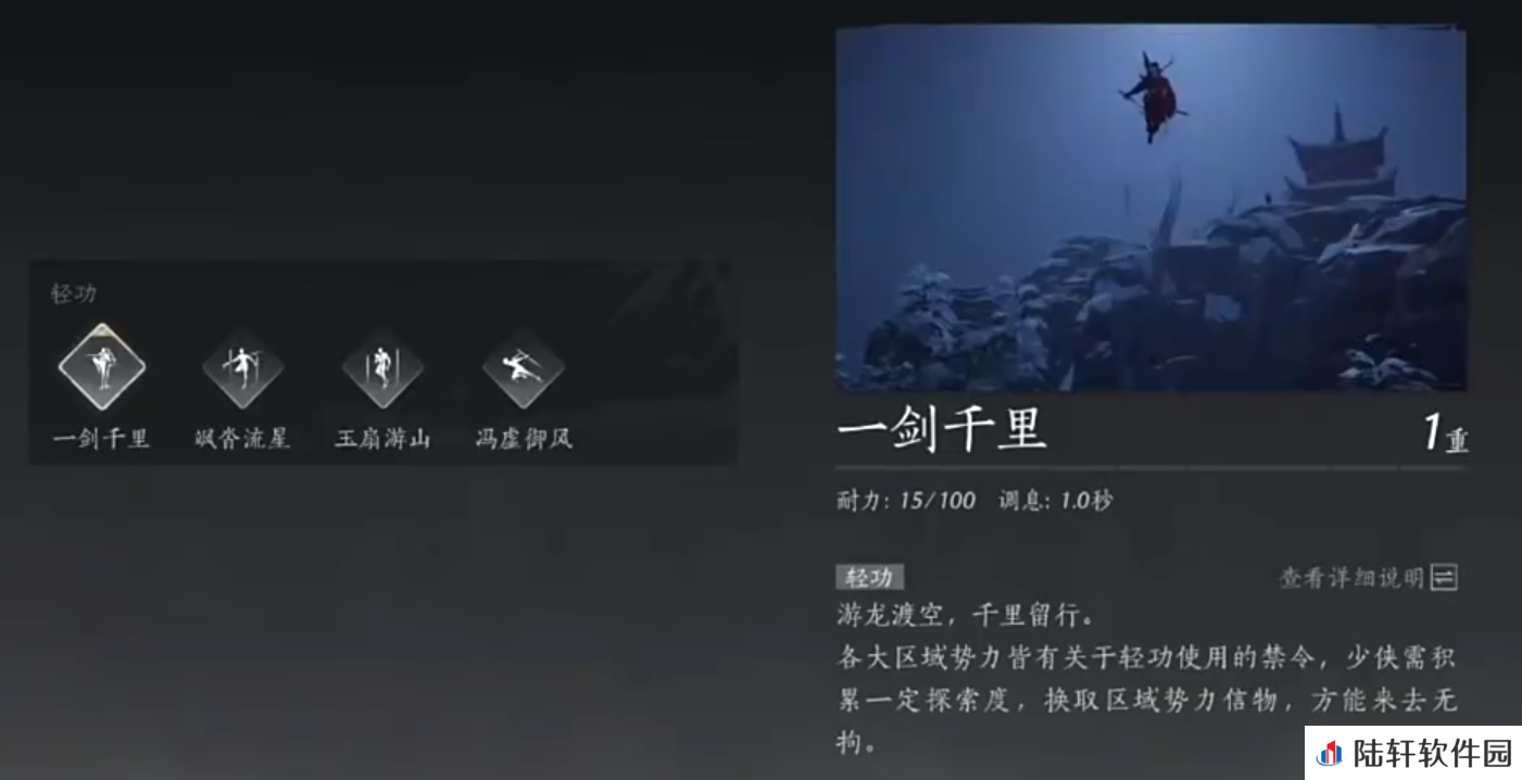 以上是燕云十六声四大轻功获取方法,还没有获得的可以按照方法去试一试,轻功这个奇术不仅仅只是用来赶路,大家在学会后可以结合武器,在战斗中使用,如到空中进行斩击等,打出各种意想不到的效果。