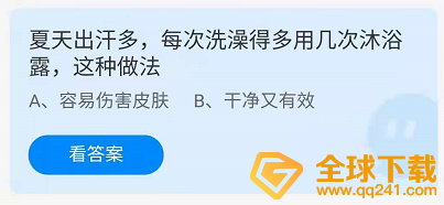 夏天出汗多每次洗澡得多用几次沐浴露这种做法-2021支付宝蚂蚁庄园8月16日每日一题答案(2)一览[图文]