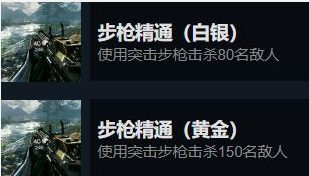步枪精通分成两种,一个是白银,一个是黄金。如果是白银就是使用突击步枪,将80个敌人杀掉,如果是黄金就是使用突击步枪,将150个敌人杀掉。在满足这些条件之后,就可以顺利的完成成就也是玩家所需要注意的。