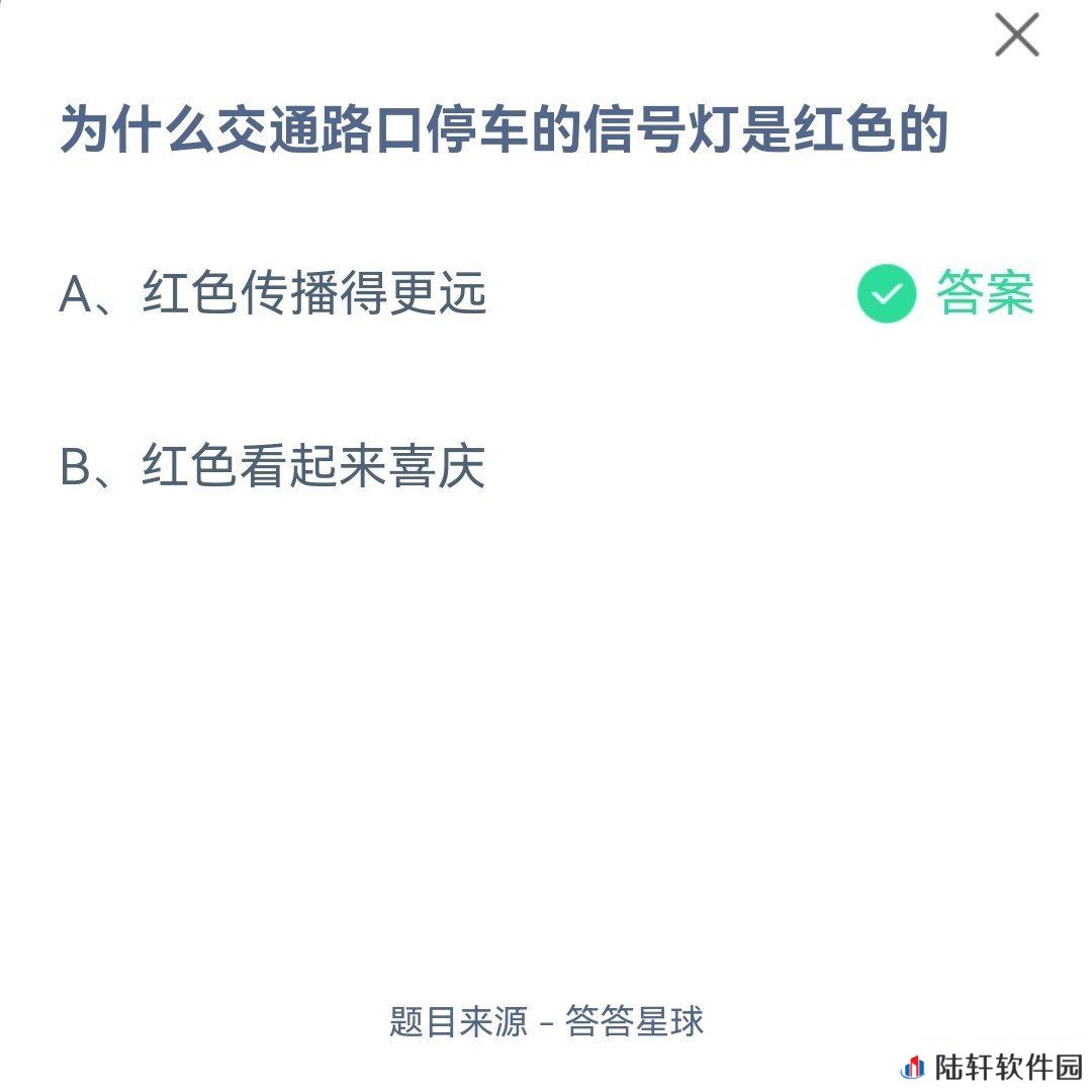为什么交通路口停车的信号灯是红色的?-2022支付宝蚂蚁庄园2月23日每日一题答案(2)一览[图文]