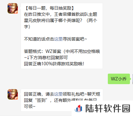 在昨日推文中,王者荣耀首款战队主题星元皮肤将归属于哪个英雄呢?-王者荣耀2022年微信2月21日每日一题答案分享一览[图文]
