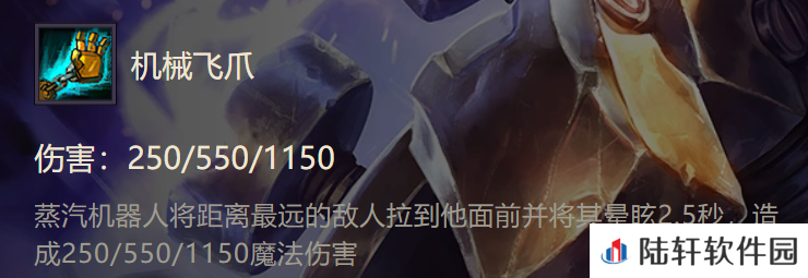 3、技能效果:蒸汽机器人开局朝最远目标释放技能并将敌人拉到自己面前并眩晕2秒,1星时、2星时、3星时对当前敌人分别造成250、550、1150的伤害。(如下图所示)